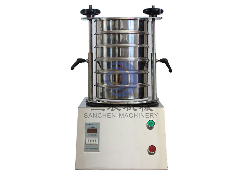 采用立式振動電機(jī)作為整機(jī)振動源,通過振動電機(jī)帶動上部振動盤振動,在通過振動盤傳導(dǎo)至安放在振動盤上部的篩框上,然后由需要檢測目數(shù)的篩框把小于篩網(wǎng)孔徑的物料篩分至下層篩框,如此層層篩選,使篩框中的物料能非常有效的起到過濾分級、檢測目的。具有定時(shí)自動關(guān)機(jī)、可確保試驗(yàn)重復(fù)性,功能全面,操作簡單的粒度分析儀器,可將一種顆粒料同時(shí)精密分出2-7個(gè)粒度段,具有噪音小、重量輕、平臺操作無須固定等特點(diǎn)。